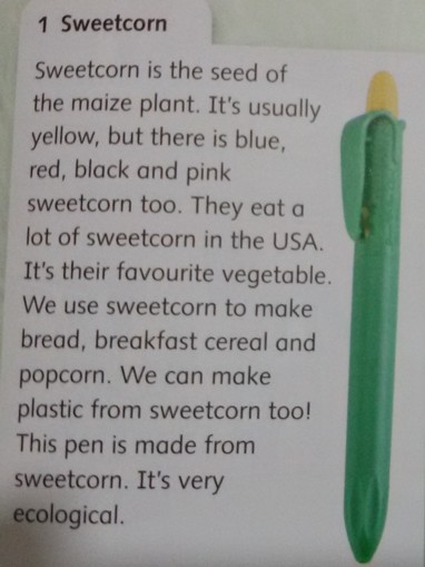 Inicio Ficheros adjuntos (Ventana nueva) Cuestionario SCORM Pregunta READ, SAY TRUE or FALSE 1. Sweetcorn is a fruit. Respuestas Opción 1 TRUE Opción 2 FALSE Pregunta 2. Sweetcorn is always yellow. Respuestas Opción 1 TRUE Opción 2 FALSE Pregunta 3. People love sweetcorn in USA. Respuestas Opción 1 TRUE Opción 2 FALSE Pregunta 4. There is bread made of sweetcorn. Respuestas Opción 1 TRUE Opción 2 FALSE Pregunta 5. You can't make plastic with sweetcorn. Respuestas Opción 1 TRUE Opción 2 FALSE Pregunta 6. This pen is made of metal. Respuestas Opción 1 TRUE Opción 2 FALSE Pregunta 7. This pen is not bad for the enviroment. Respuestas Opción 1 TRUE Opción 2 FALSE Pregunta 8. We use sweetcorn to make a lot of things. Respuestas Opción 1 TRUE Opción 2 FALSE Habilitar JavaScript