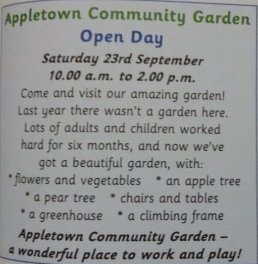 Cuestionario SCORM Pregunta GARDENING 1 When is the Open Day? Respuestas Opción 1 A. It's in the Appletown. Opción 2 B. It's on Saturday 23rd September. Opción 3 C. It's from 10:00 am to 2:00 pm. Opción 4 D. There are flowers and vegetables. Pregunta 2. Where is the Community Garden? Respuestas Opción 1 A. It's in the Appletown. Opción 2 B. It's on Saturday 23rd September. Opción 3 C. It's from 10:00 am to 2:00 pm. Opción 4 D. There are flowers and vegetables. Pregunta 3. What are there in the garden? Respuestas Opción 1 A. It's in the Appletown. Opción 2 B. It's on Saturday 23rd September. Opción 3 C. It's from 10:00 am to 2:00 pm. Opción 4 D. There are flowers and vegetables. Pregunta 4. What time is the Community Garden open? Respuestas Opción 1 A. It's in the Appletown. Opción 2 B. It's on Saturday 23rd September. Opción 3 C. It's from 10:00 am to 2:00 pm. Opción 4 D. There are flowers and vegetables. Pregunta 5. How long did they worked? Respuestas Opción 1 A. There are apples and pears. Opción 2 B. Lot's of adults and children worked. Opción 3 C. They worked hard for six months. Opción 4 D. There is a climbing frame. Pregunta 6. Who worked in the Community Garden? Respuestas Opción 1 A. There are apples and pears. Opción 2 B. Lot's of adults and children worked. Opción 3 C. They worked hard for six months. Opción 4 D. There is a climbing frame. Pregunta 7. Where do the children play? Respuestas Opción 1 A. There are apples and pears. Opción 2 B. Lot's of adults and children worked. Opción 3 C. They worked hard for six months. Opción 4 D. There is a climbing frame. Pregunta 8. What two fruits grow in the garden? Respuestas Opción 1 A. There are apples and pears. Opción 2 B. Lot's of adults and children worked. Opción 3 C. They worked hard for six months. Opción 4 D. There is a climbing frame. Habilitar JavaScript