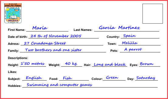 November - hair - two - swimming - parrot - adress - fifty - María - English - Spain -