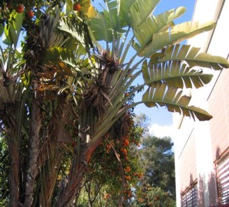 ESTRELITZIA AUGUSTA O ESTRELITZIA ALBA. Nombre vulgar: Flor <<Ave del Paraíso>> Familia: Musáceas, Originaria de Sudáfrica. Planta herbácea perenne. Hojas: Grandes y alargadas de color verde grisáceo, muy pecioladas, de forma oval y oblonga. Flores: Grandes y blancas encerradas por una espata de un bonito verde oscuro tendente a la púrpura, de extraña morfología que semeja a un ave. Clima: Es cultivada en el litoral mediterráneo a pleno sol. Suelo: En terrenos sustanciosos y ligeramente arenosos, es donde mejor prospera. Utilización: Son cultivadas como plantas ornamentales. Es una planta majestuosa que puede alcanzar hasta los 10m de altura.