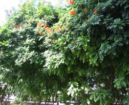 verde todo el año y tiene la copa redondeada con numerosas ramas.